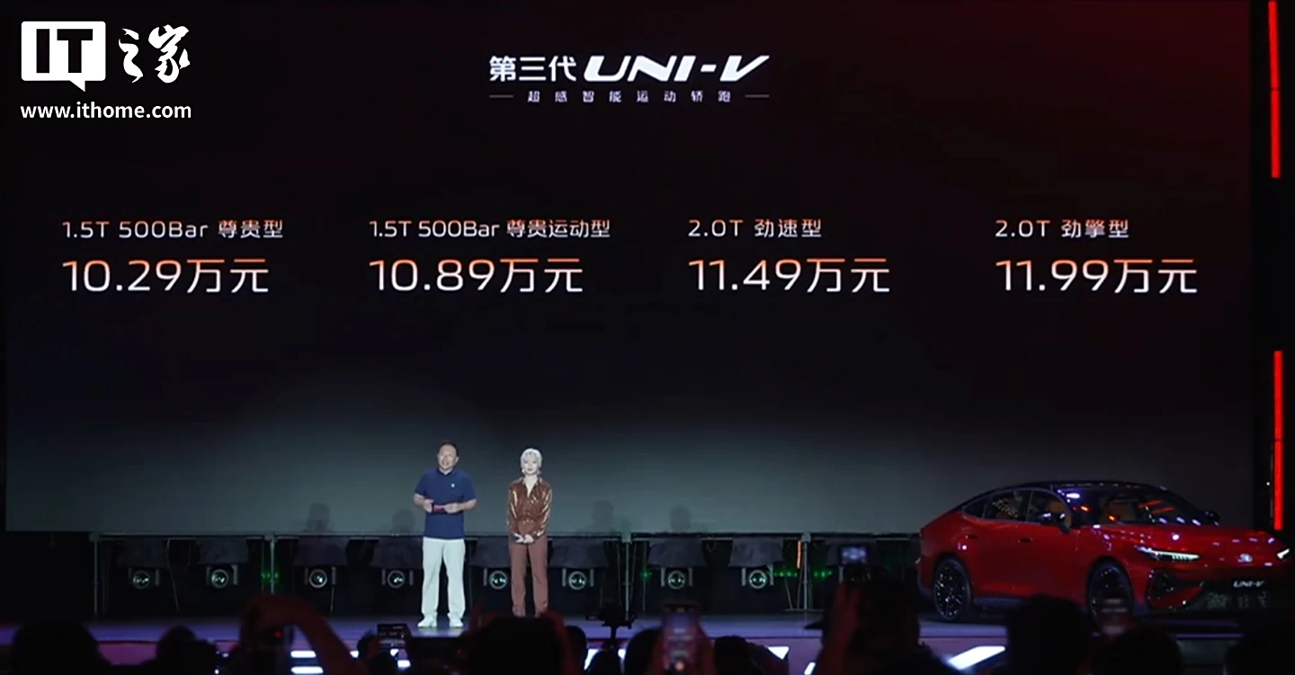 IT之家 8 月 7 日消息,長安汽車(000625)第三代 UNI-V 車型今晚正式上市,該車提供 1.5T 和 2.0T 兩種動力,售價 10.29 萬...