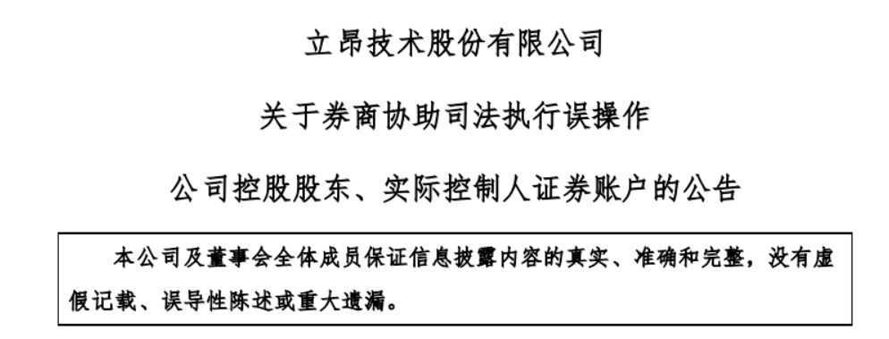 針對上述情節(jié),立昂技術(shù)稱已與協(xié)助司法執(zhí)行的券商進(jìn)行溝通,將依法合規(guī)處理相關(guān)事宜。協(xié)助司法執(zhí)行的券商對上述誤操作行為承擔(dān)相關(guān)損失及責(zé)任。此外,上述誤操作行為所得的收益歸公司所有。
