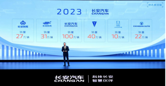 據(jù)董事長朱華榮透露,2023年長安汽車集團銷售目標(biāo)為280萬輛,其中長安汽車100萬輛,長安歐尚31萬輛,深藍(lán)40萬輛,阿維塔10萬輛,長安凱程27萬輛,海外22萬輛。這一目標(biāo)在給公司一定壓力和挑戰(zhàn)的同時,也將促使長安汽車奮勇向前,一定程度上鎖定了未來業(yè)績增長幅度,為不確定的資本市場市場增加了確定性。
