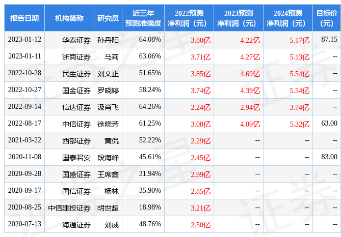 最新盈利預(yù)測明細(xì)如下: