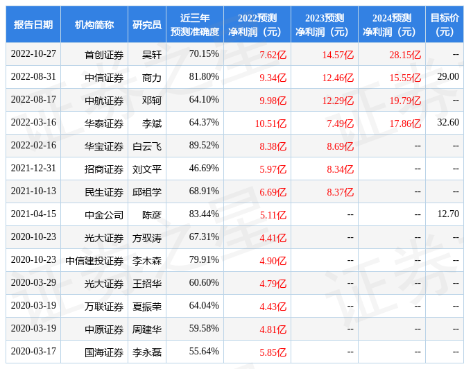以下是詳細(xì)的盈利預(yù)測信息: