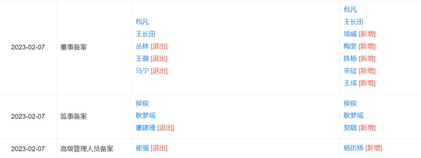 另外,又新增了5名董事,分別是:項威、陶堅、陳楊、辛欣、王成;新增1名監(jiān)事,為鄭熠;新增1名高管,為楊歷揚(財務(wù)負責人)。