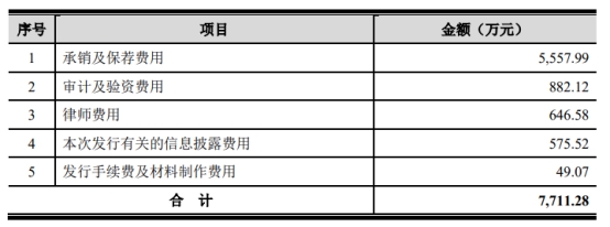 德馬科技發(fā)行費用總額為7,711.28萬元,其中光大證券獲得承銷及保薦費用5,557.99萬元。