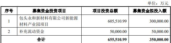 本次向特定對象發(fā)行股票擬募集資金總額(含發(fā)行費用)不超過35.00億元,扣除發(fā)行費用后的募集資金凈額將用于包頭永和新材料有限公司新能源材料產(chǎn)業(yè)園項目、補充流動資金。