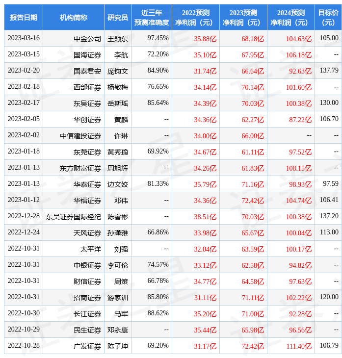 最新盈利預(yù)測(cè)明細(xì)如下: