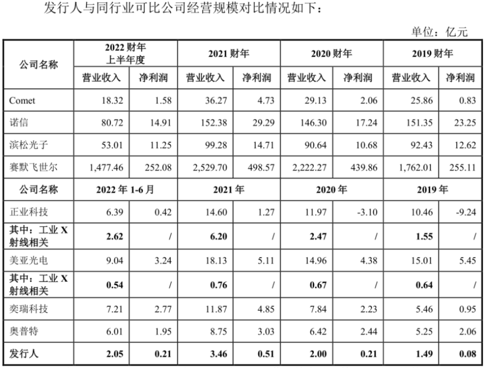 2019-2021年及2022上半年,日聯(lián)科技營業(yè)收入分別為1.49億元、2億元、3.46億元和2.05億元,凈利潤分別為831.84萬元、2137.62萬元、5081.59萬元和2108.01萬元,雖然呈現(xiàn)一定增長態(tài)勢,但弱于整體的行業(yè)業(yè)績增長趨勢。