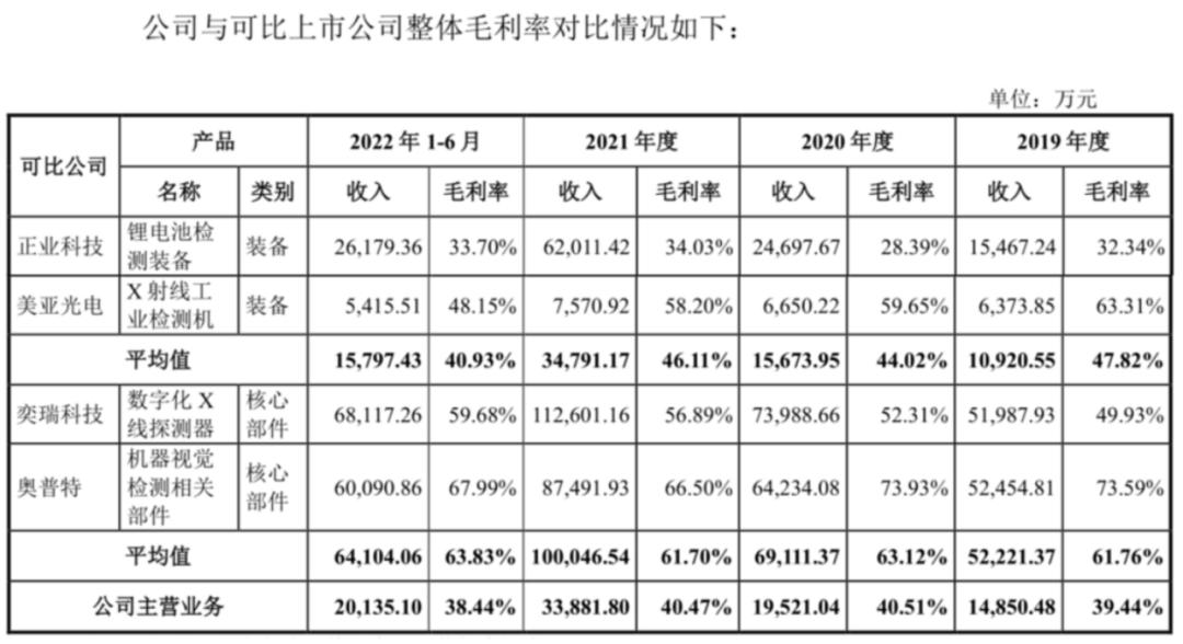 招股資料顯示,目前,公司主營業(yè)務(wù)中X射線智能檢測裝備占比到90%以上,是公司核心業(yè)務(wù),其中集成電路及電子制造檢測裝備2022上半年占比44%,新能源電池檢測裝備占比30%,鑄件焊件及材料檢測裝備占比17%。