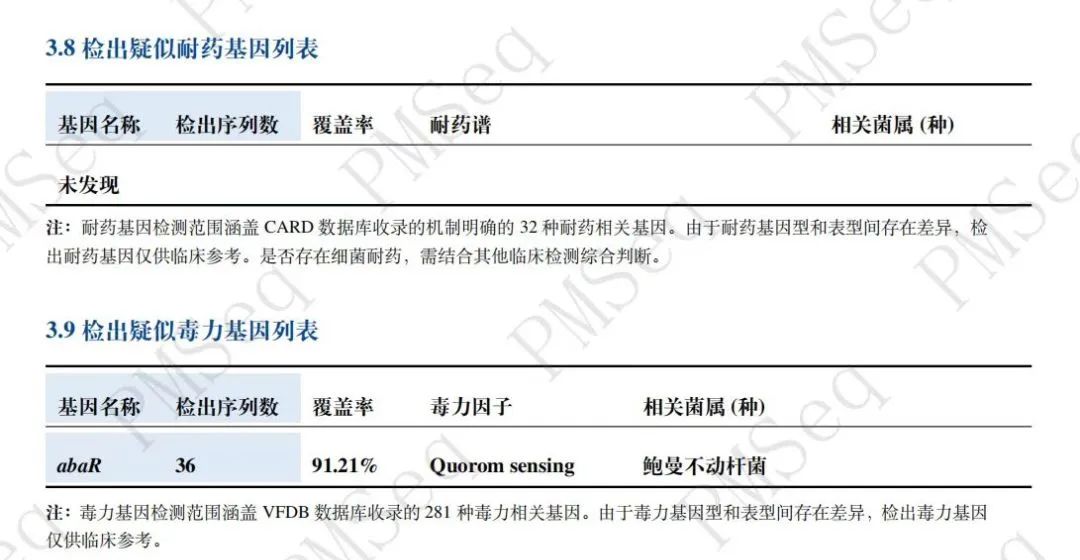 PMseq 報告配置不斷更新升級,使其更完善!更全面!更科學!配置PMseq 默認報告模板以及個性化報告模板;上線“檢出疑似耐藥基因列表”和“檢出疑似毒力基因列表”;升級“參考文獻”和“微生物說明”數據庫!