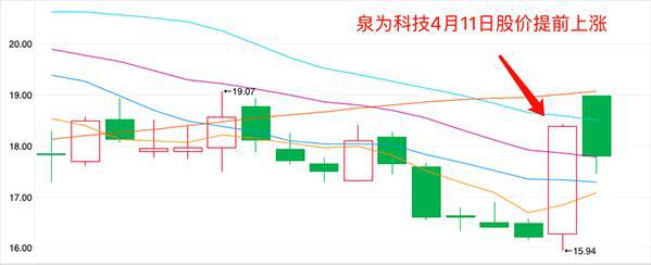 4月11日,泉為科技股價曾出現(xiàn)由跌轉(zhuǎn)漲的走勢。當日收盤,該公司股價上漲13.38%報收18.39元/股。泉為科技在發(fā)布中標公告前,股價即出現(xiàn)異動的情況也受到了深交所的關(guān)注。
