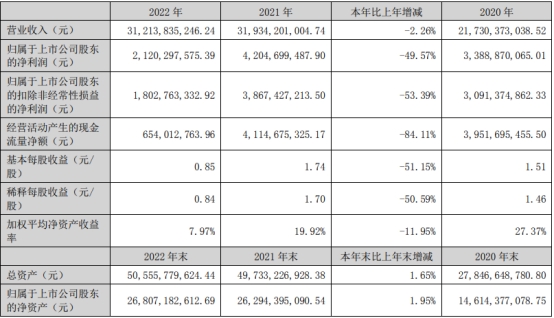 北京4月13日訊 東方雨虹(002271)(002271.SZ)于昨日晚間發(fā)布2022年年度報(bào)告,公司2022年實(shí)現(xiàn)營(yíng)業(yè)收入312.14億元,同比下降2.26%;歸屬于上市公司股東的凈利潤(rùn)為21.20億元,同比下降49.57%;歸屬于上市公司股東的扣除非經(jīng)常性損益的凈利潤(rùn)為18.03億元,同比下降53.39%;經(jīng)營(yíng)活動(dòng)產(chǎn)生的現(xiàn)金流量?jī)纛~為6.54億元,同比減少84.11%。
