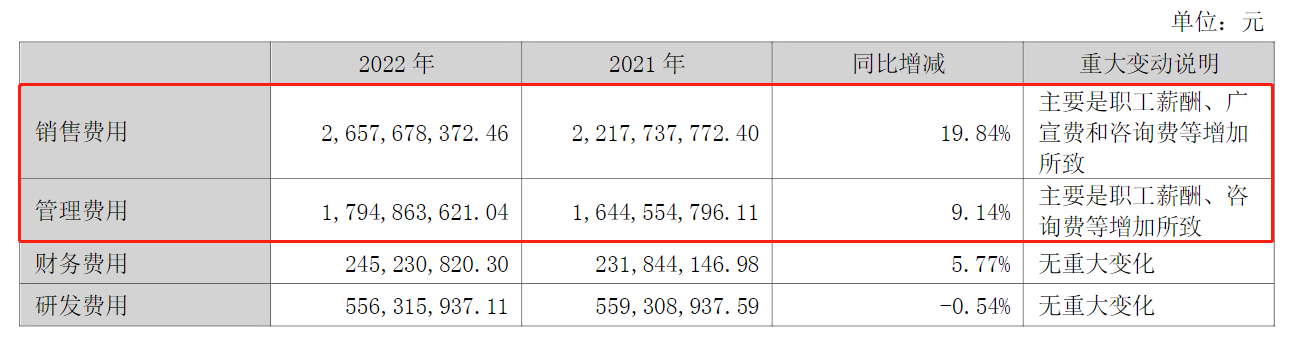 此外,公司2022年的營業(yè)成本為231.71億元,較上年同期增長4.45%,主要系報告期瀝青等大宗原材料價格持續(xù)大幅上漲,導致營業(yè)成本有所上升。值得注意的是,報告期內,公司的銷售費用為26.58億元,較上年同期增加近20%;管理費用為17.95億元,較上年同期增長9.14%,公司稱主要系職工薪酬、廣宣費和咨詢費等增加所致。