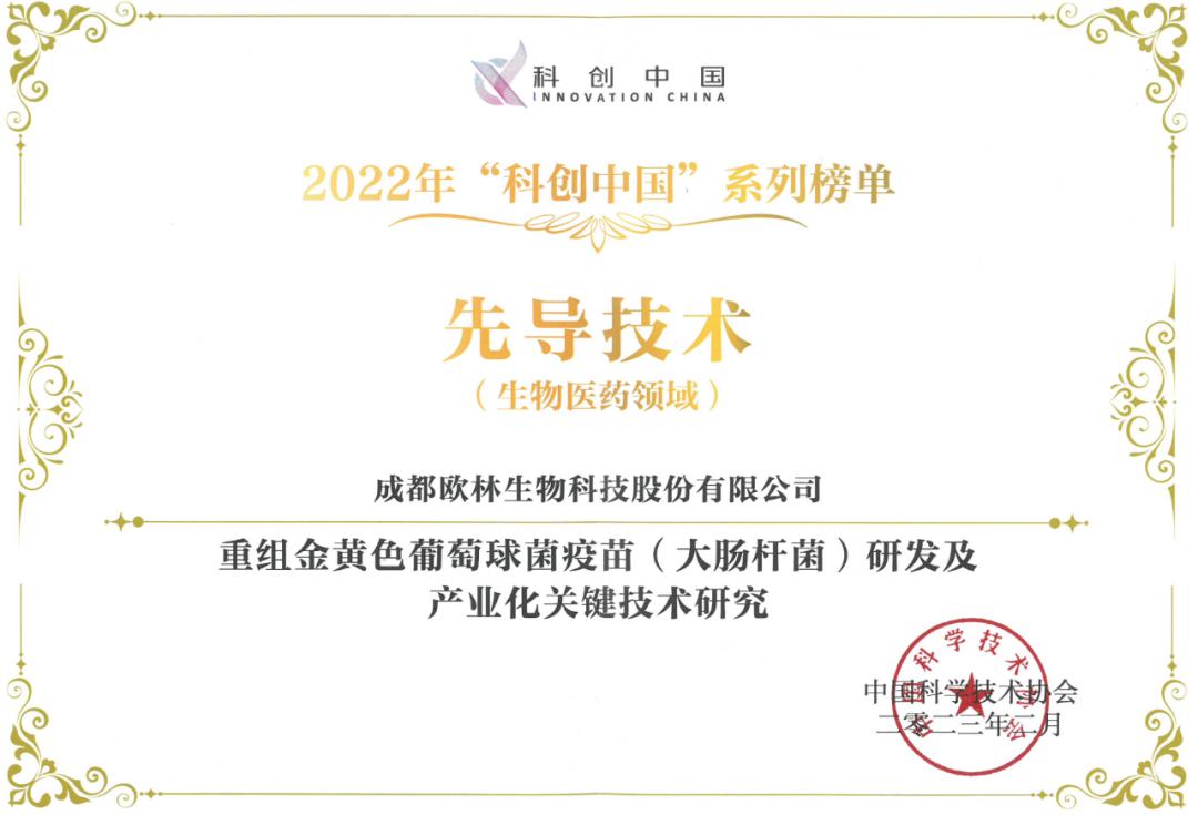 2023年4月27日,由成都市人民政府主辦,成都市科學(xué)技術(shù)協(xié)會、成都市科學(xué)技術(shù)局、成都市社會科學(xué)界聯(lián)合會、中國科學(xué)院成都分院承辦的2023年(第二十四屆)成都市科學(xué)技術(shù)年會開幕式在成都順利舉辦,會上頒發(fā)了中國科協(xié)2022年“科創(chuàng)中國”創(chuàng)新基地、系列榜單證書,成都歐林生物科技股份有限公司(以下簡稱“歐林生物”)成功入選2022年“科創(chuàng)中國”先導(dǎo)技術(shù)榜(生物醫(yī)藥領(lǐng)域)。