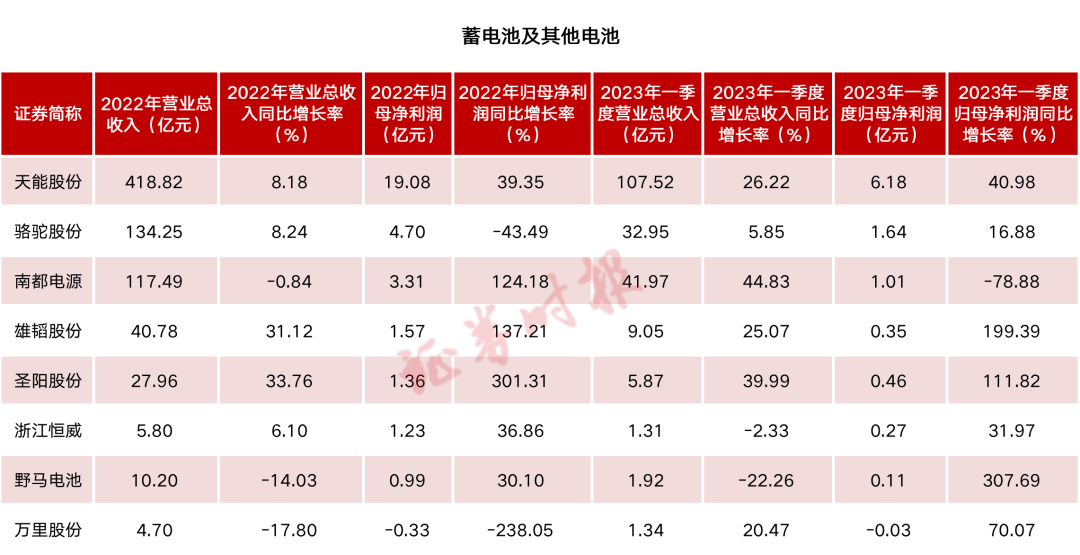電池行業(yè)上市公司2022年報(bào)和2023一季報(bào)業(yè)績(jī)