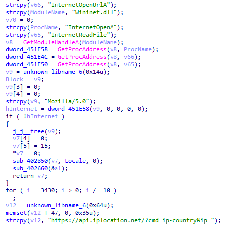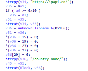 ③將上一步獲取到的外網(wǎng)IP地址在(api.iplocation.net,ipapi.co等)Web服務(wù)中查詢所屬國家的名稱。