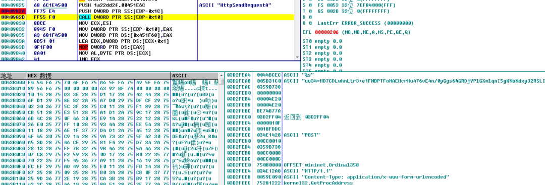 ③線程sub_409900負責將收集到的信息使用POST方式發(fā)送給C2,內(nèi)容為收集的系統(tǒng)信息加密數(shù)據(jù)。