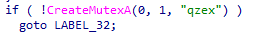 4、創(chuàng)建互斥體名為“qzex”,保證木馬自身單實例運行。