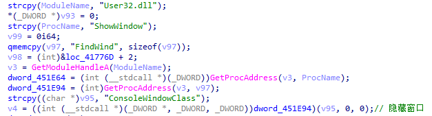 3、該遠控運行后首先隱藏運行窗口。
