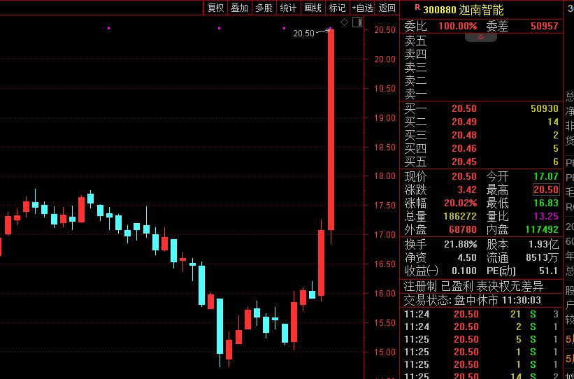 智能電網(wǎng)早間放量高開(kāi)高走,板塊指數(shù)漲逾1%,創(chuàng)3個(gè)月來(lái)新高,半日成交接近昨日全天成交。迦南智能(300880)開(kāi)盤(pán)后直線(xiàn)拉升,快速20%漲停,股價(jià)創(chuàng)1年多來(lái)新高;有方科技、萬(wàn)勝智能(300882)、南網(wǎng)能源(003035)等漲停或漲超10%。