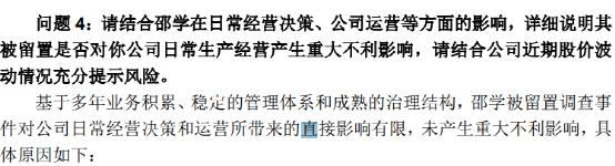 對(duì)此,公司解釋稱(chēng),綜合考慮國(guó)家法律法規(guī)規(guī)定、公司運(yùn)營(yíng)實(shí)際狀況、邵學(xué)履職實(shí)際情況等方面因素,為保障公司平穩(wěn)運(yùn)營(yíng),公司未對(duì)邵學(xué)被實(shí)施留置事項(xiàng)進(jìn)行對(duì)外披露。
