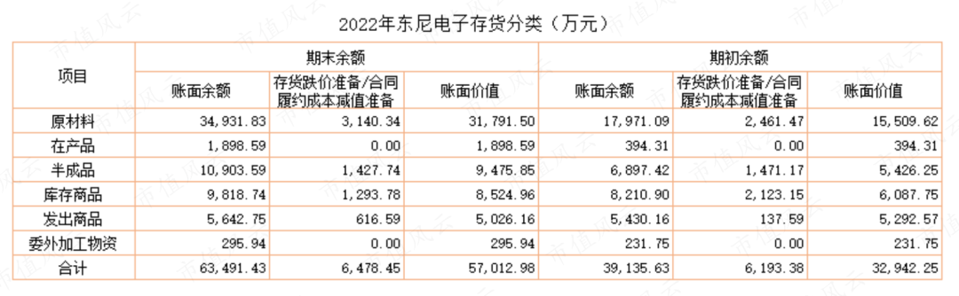 結(jié)合資產(chǎn)負(fù)債表看,東尼電子在2022年應(yīng)收票據(jù)及應(yīng)收賬款增加1.8億元,同時,存貨增加2.5億元,而存貨中增加最多的是原材料(見下表)。上市公司解釋應(yīng)收賬款增加的原因稱:光伏及新能源產(chǎn)品應(yīng)收款賬期長且采用銀行承兌匯票回款。
