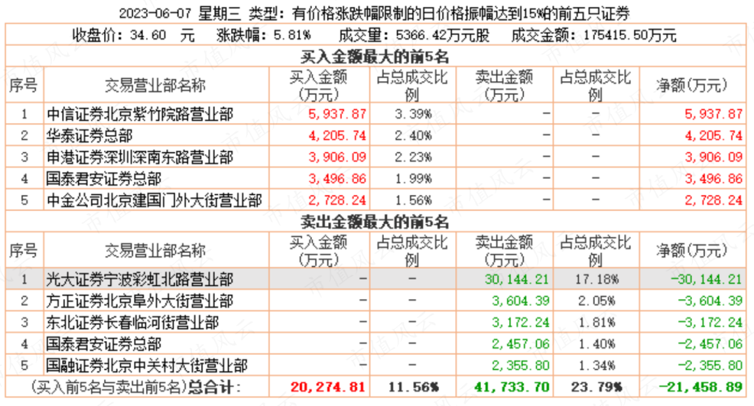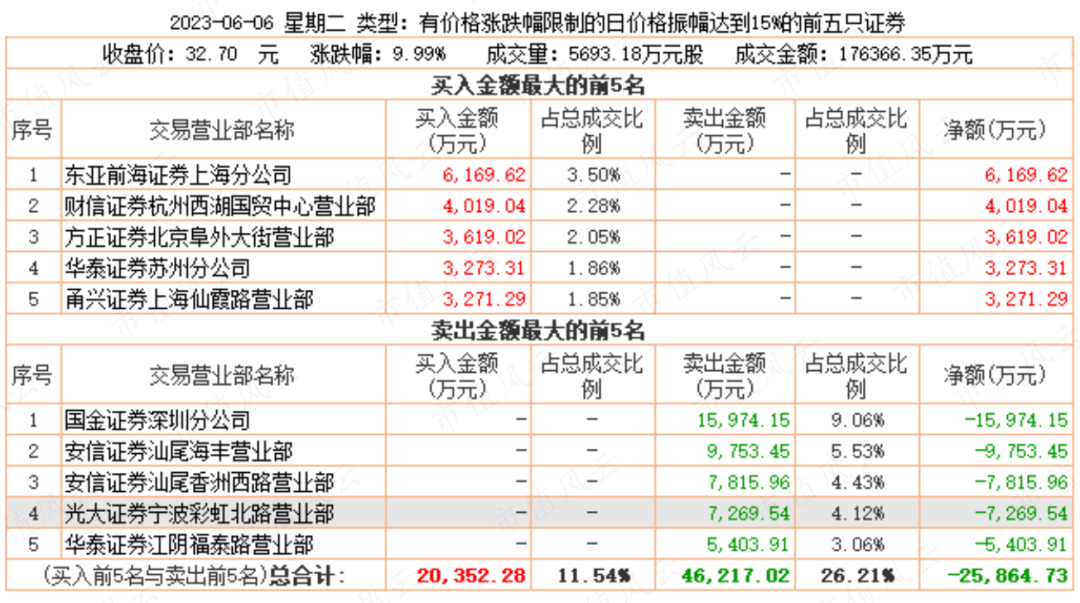 6月7日,利通電子再次因“振幅達(dá)到15%”而登陸龍虎榜,而光大證券寧波彩虹北路營業(yè)部在這天則大舉賣出超過3億元,為30144萬元,占當(dāng)日成交總額的17%。