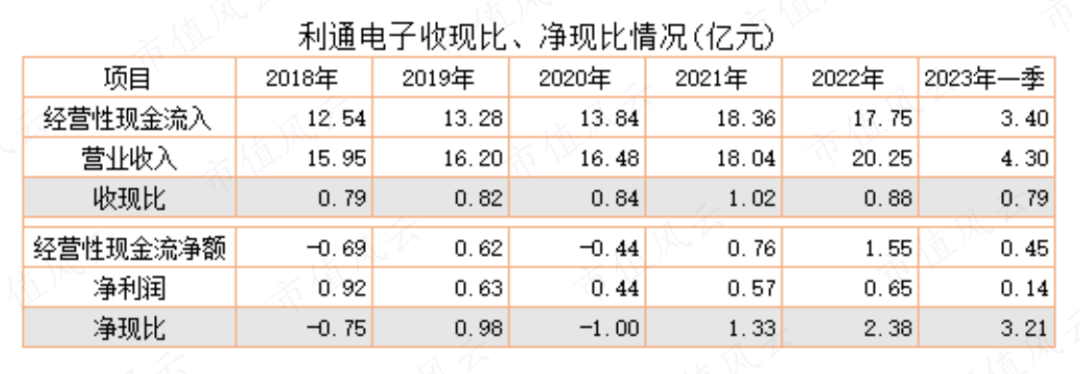 東尼電子收現(xiàn)比正常,該數(shù)值在1上下,而凈現(xiàn)比變動非常大,2022年經(jīng)營性現(xiàn)金流凈額-1.66億元,當(dāng)期雖然有1.06億元的凈利潤,但實際并沒有真金白銀流回上市公司的口袋,賺了個寂寞。