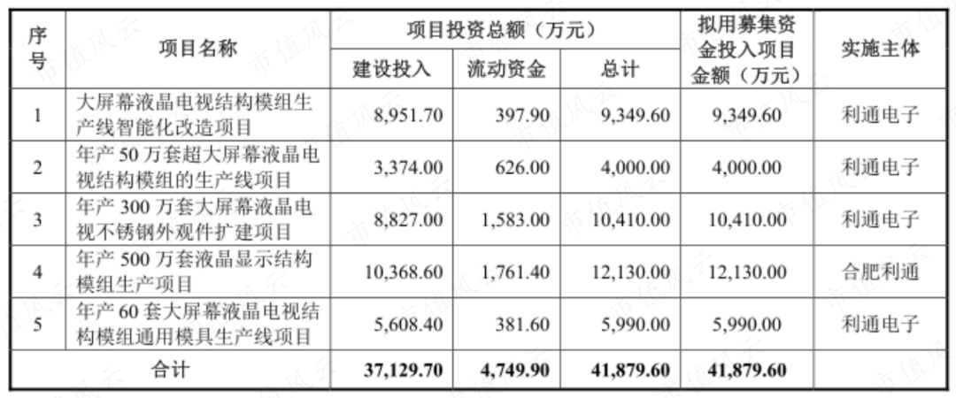 2018年12月,利通電子IPO合計募集4.82億元,用于年產(chǎn)500萬套液晶顯示結(jié)構(gòu)模組等項目。