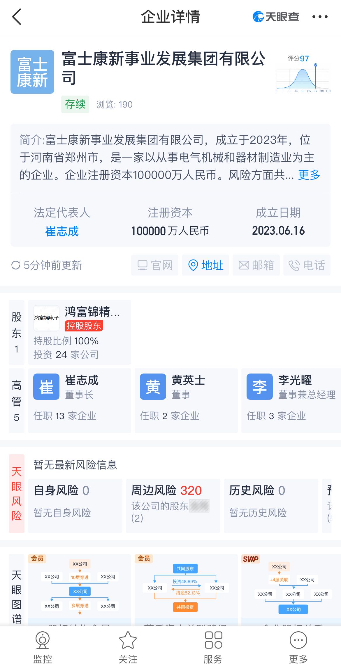 股東信息顯示,該公司由鄭州富士康關(guān)聯(lián)公司鴻富錦精密電子(鄭州)有限公司全資持股。