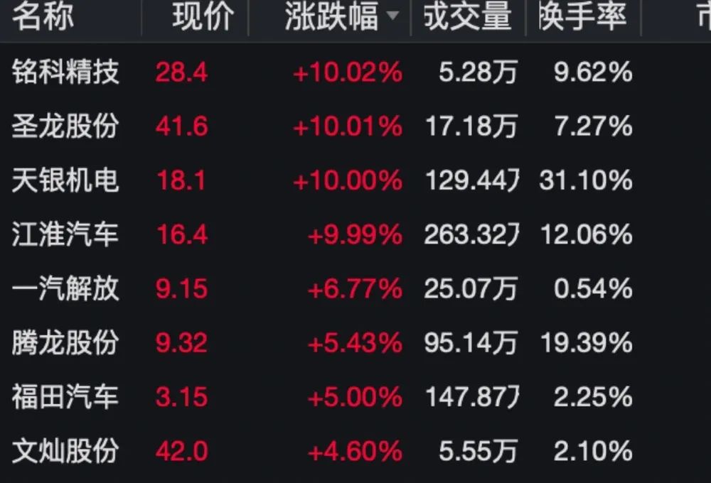 華為汽車概念走強(qiáng),圣龍股份實(shí)現(xiàn)14連板,銘科精技(001319)、江淮汽車(600418)漲停。