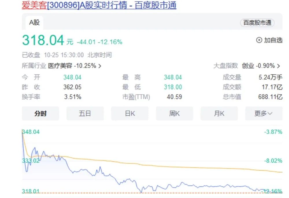 值得注意的是,昨晚剛公布三季報(bào)的愛美客開盤即大幅下探,收盤下跌12.16%報(bào)318.04元,股價(jià)較年初高點(diǎn)已“腰斬”,最新市值688億元。