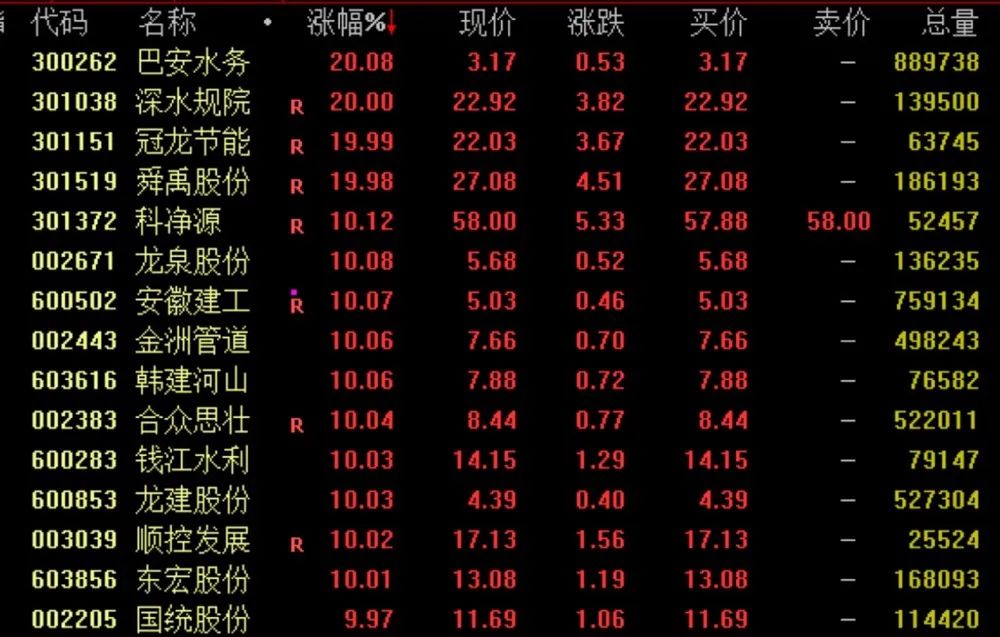 水利板塊盤中爆發(fā),個(gè)股掀漲停潮。截至收盤,巴安水務(wù)、深水規(guī)院、冠龍節(jié)能、舜禹股份(301519)等“20cm”漲停,龍泉股份(002671)、安徽建工(600502)、金洲管道、錢江水利(600283)等亦漲停。