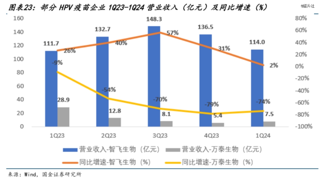 HPV疫苗板塊的疲軟,從2024Q1智飛生物和萬泰生物的業(yè)績上,可能就初見端倪,萬泰生物可以解釋是產(chǎn)品降價(jià)帶來的影響,而智飛生物只錄得個(gè)位數(shù)增幅,未免有些乏力。