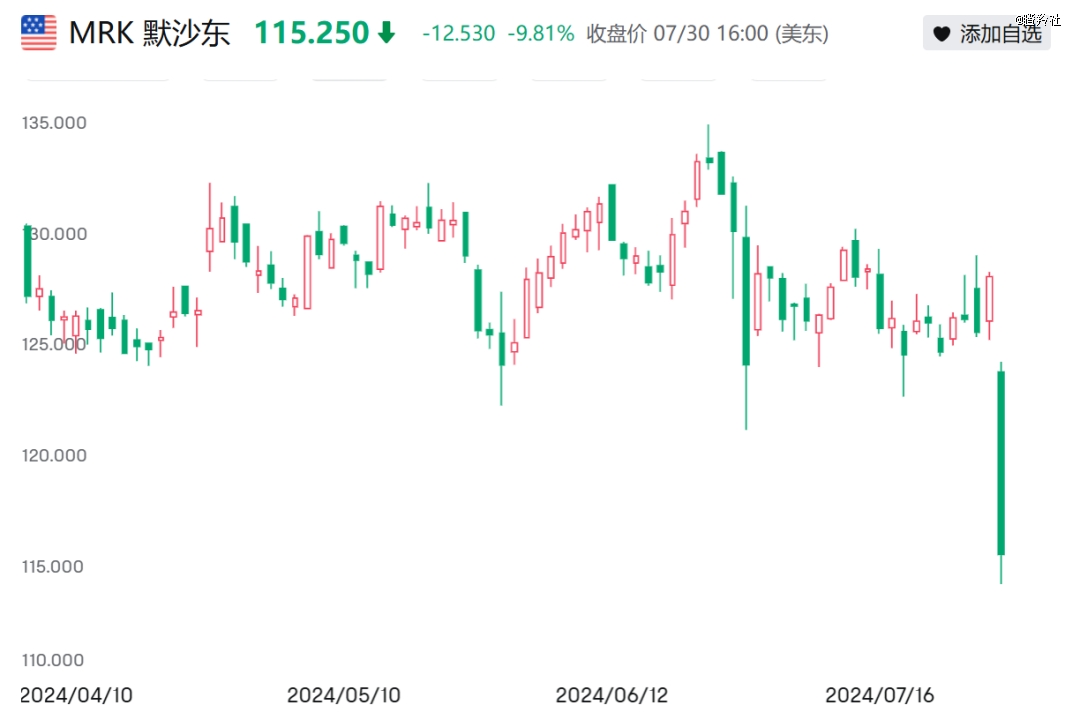 但是,這份穩(wěn)健的財(cái)報(bào)當(dāng)日并沒有給擁有“藥王”的默沙東帶來較好市場表現(xiàn),反倒引發(fā)公司的股價(jià)大跌。