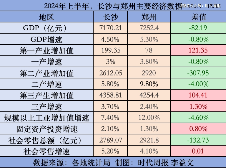 兩相對比,在2024年的上半年,鄭州以82.19億元的微弱優(yōu)勢再度險勝長沙。此前的一季度,鄭州同樣以25.73億元的優(yōu)勢跑贏長沙。這也是近15年來,鄭州首次連續(xù)兩個季度GDP超過長沙。