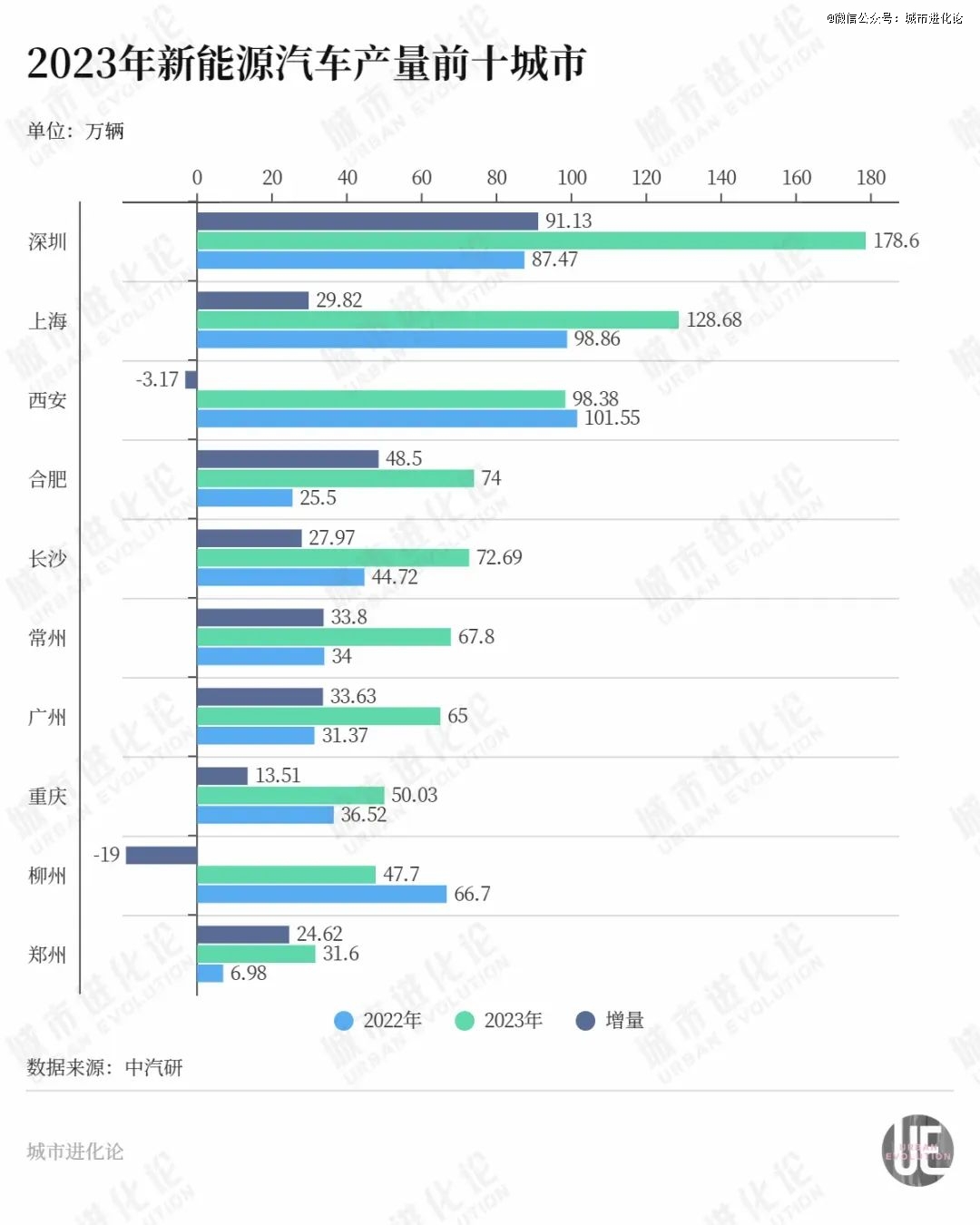 2023年鄭州新能源汽車產(chǎn)量31.6萬輛,位居全國第十,而此前一年鄭州的新能源汽車產(chǎn)量僅6.98萬輛。眼下,這樣的“狂飆”式增長還在繼續(xù)。鄭州統(tǒng)計局?jǐn)?shù)據(jù)顯示,1-5月,鄭州全市新能源汽車產(chǎn)量同比增長了72.8%,預(yù)計全年也將有大幅增長。