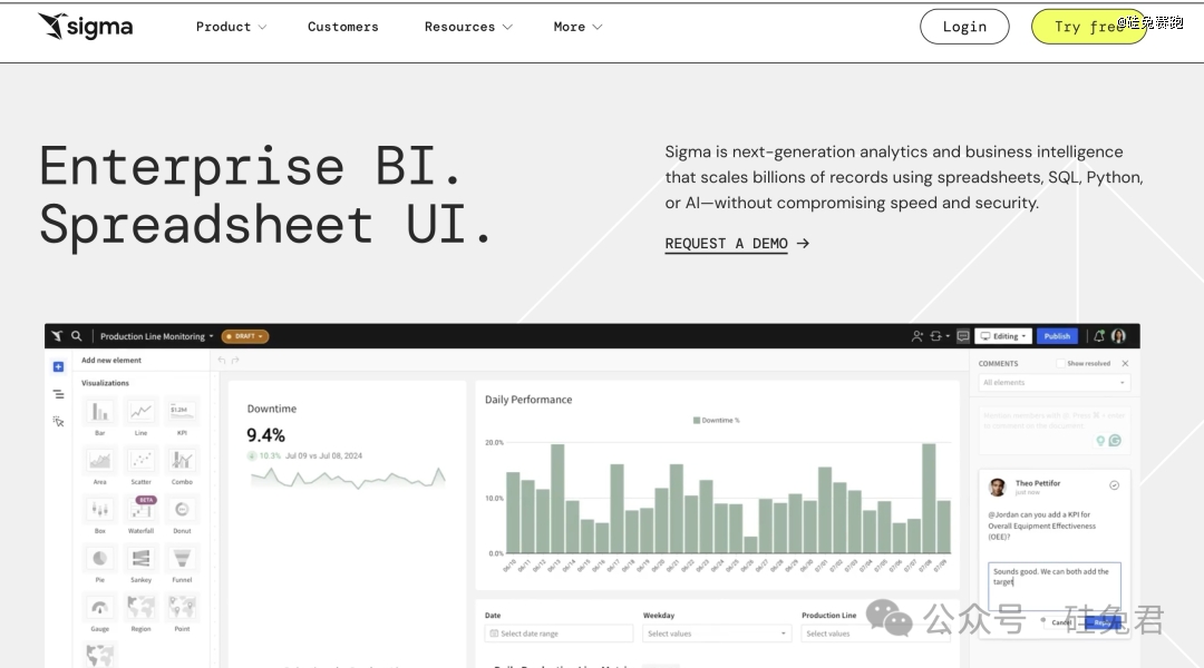 Sigma Computing是一家由AI驅(qū)動的的大數(shù)據(jù)分析初創(chuàng)公司。該公司主要利用AI工具,將電子表格、圖表和自然語言敘述相結(jié)合,幫助用戶更好地利用存儲在Snowflake云數(shù)據(jù)倉庫中的實時數(shù)據(jù)。