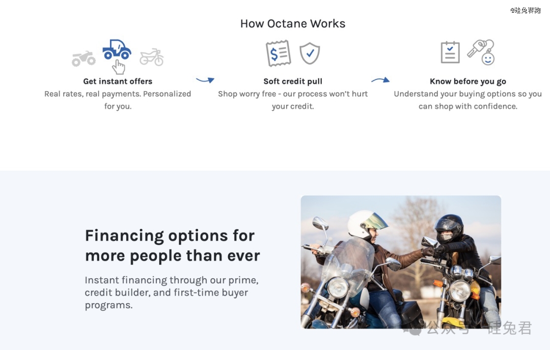 Octane成立于2014年,主要為割草機、車等產(chǎn)品提供借貸服務。簡單地說,它希望幫助想要購買摩托車、雪地摩托、水上摩托艇和全地形車等物品的用戶直接獲得所需的融資。