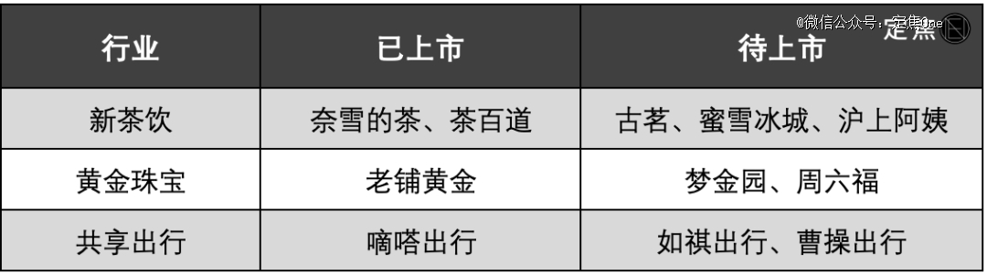 行業(yè)上也出現(xiàn)了扎堆現(xiàn)象,新茶飲、共享出行、黃金珠寶,都是好幾家公司組團一起“闖關(guān)”。