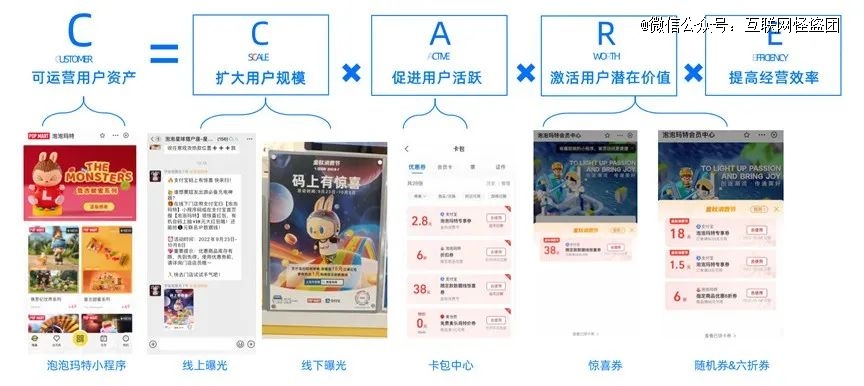 另一個(gè)案例是泡泡瑪特:2022年秋季大促期間,通過支付寶“三券齊發(fā)”(驚喜券、商品券、隨機(jī)券),以及線上線下、公域私域相結(jié)合的全域運(yùn)營(yíng),在15天內(nèi)撬動(dòng)了4899萬銷售額,ROI高達(dá)3772倍,其中新客占比60%以上!如果說這次活動(dòng)還有什么缺陷,那就是在支付寶站內(nèi)承接轉(zhuǎn)化時(shí),由于小程序模塊不夠豐富,在一定程度上影響了用戶轉(zhuǎn)化率、流失了銷售機(jī)會(huì)。為了改善上述問題,泡泡瑪特專門組建了支付寶小程序運(yùn)營(yíng)團(tuán)隊(duì)。