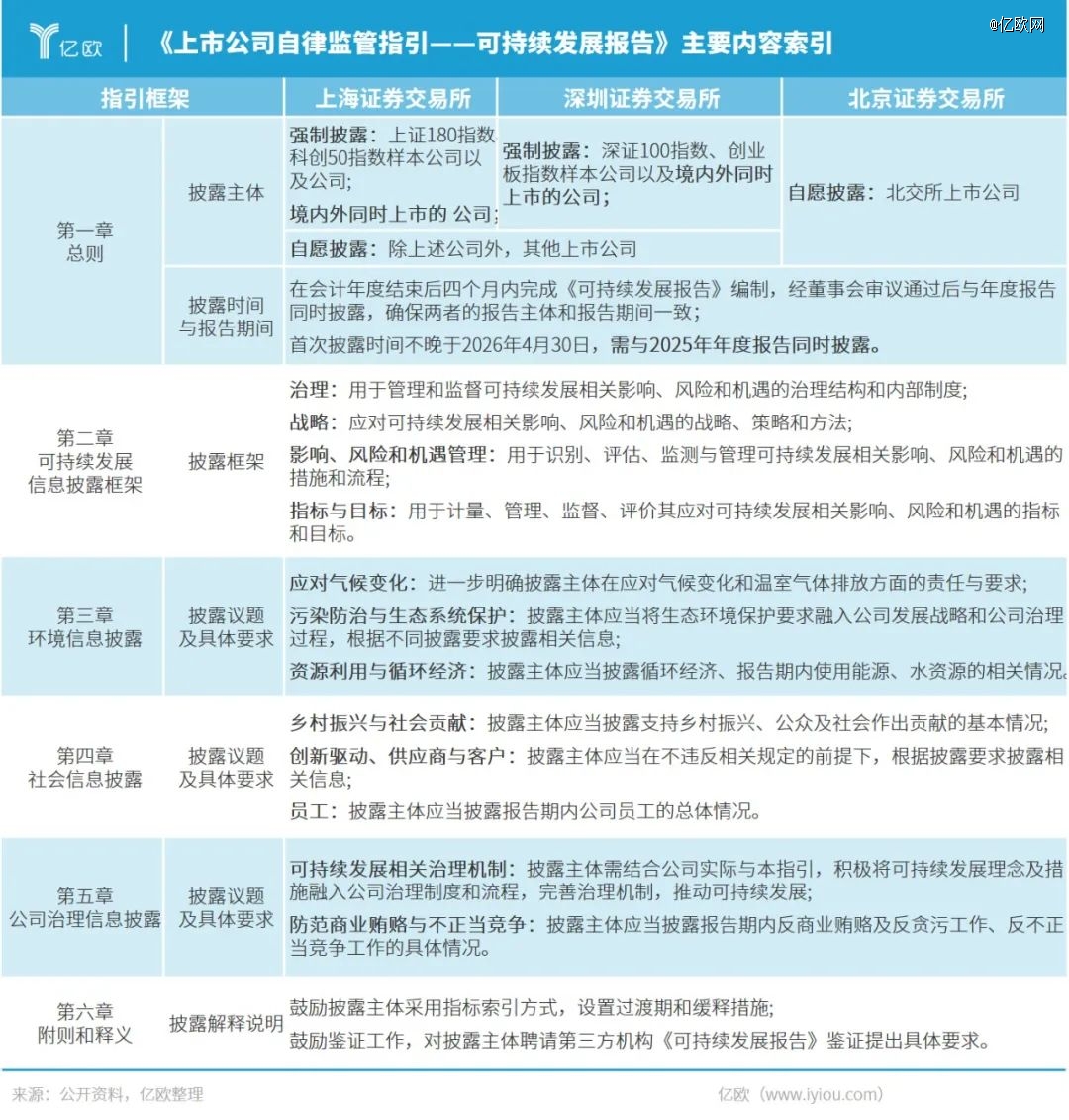 2月8日晚,在中國證監(jiān)會的統(tǒng)一部署下,滬北深(上海、北京、深圳)證券交易所同時發(fā)布《上市公司自律監(jiān)管指引——可持續(xù)發(fā)展報告(試行)(征求意見稿)》(下文簡稱《征求意見稿》),首次對國內(nèi)上市公司可持續(xù)發(fā)展信息披露原則、框架和各議題指標提出明確要求。