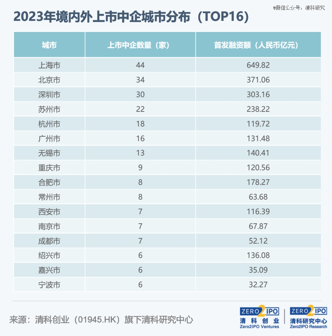 從上市數(shù)量來看,江蘇和廣東均有64家中企上市排名并列*。首發(fā)融資額方面,上海以649.82億元*其他地區(qū),蘇、粵兩省排名二、三,此外,安徽、重慶、湖南等中西部省份增勢顯著,上市數(shù)量及融資規(guī)模均實(shí)現(xiàn)較大幅度增長。