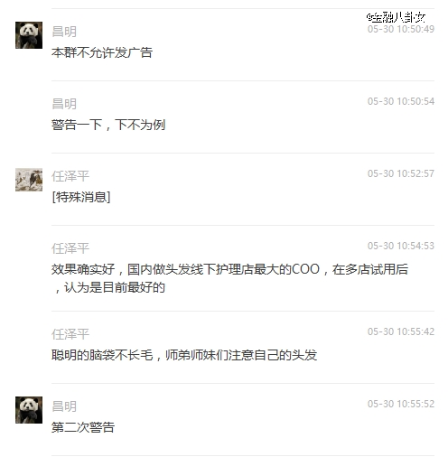 但網(wǎng)紅經(jīng)濟(jì)學(xué)家或許也被當(dāng)成了微商,群主立馬站出來兩次警告不能發(fā)廣告,令人哭笑不得。