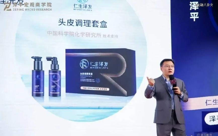 但最離譜的莫過于,去年5月,任澤平成立蘇州仁生澤發(fā)公司,并且一改往日高深的學(xué)術(shù)推文,親自下場在微博狂推生發(fā)液,他還展示了自己的頭發(fā),主打一個現(xiàn)身說法。