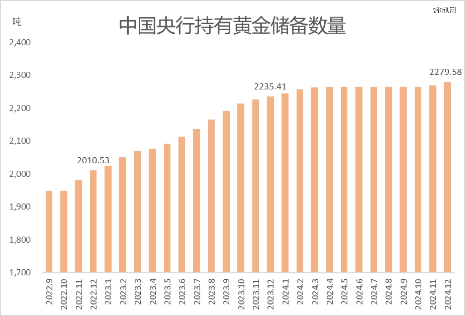 1月7日,我國央行公布了新一期官方儲(chǔ)備資產(chǎn)數(shù)據(jù),截至2024年末,我國央行持有黃金儲(chǔ)備2279.58噸,全年增持44.17噸,這是其連續(xù)第三年增持黃金。其中我國央行在2023年增持黃金224.88噸,居于當(dāng)年全球各國央行增持黃金數(shù)量首位。