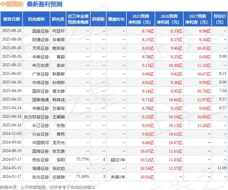 最新盈利預(yù)測(cè)明細(xì)如下: