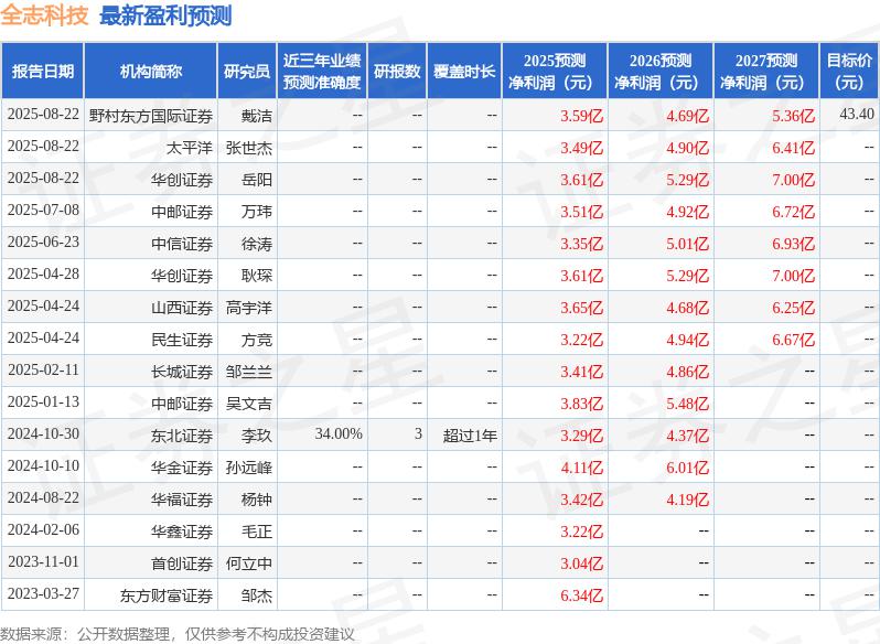 最新盈利預(yù)測明細(xì)如下: